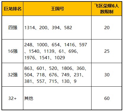 各服迁入荣耀6的数量限制(基于S6巨龙成绩)